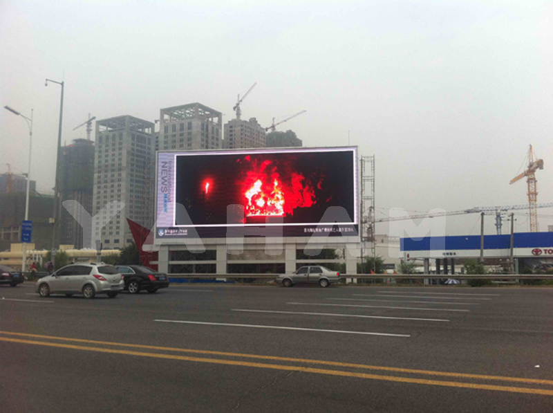 该项目采用立柱造型安装方式,显示屏离地面高度约2.5米,由四个柱子支撑,构建出最佳视觉角度;显示屏显示面积在183.5㎡,像素间距P16mm,分辨率1280(列)*560(行);材料采用国际最先进的日本日亚管芯,整屏亮度达8000nits,具有良好的显示效果,广告色彩鲜艳但不失柔和,画面真实清晰,屏体系统连续工作时间相对较长。先进的图像处理技术及播控处理技术可同步显示一整幅画面,也可分成若干画面显示,方便客户操作。 此外,我司在产品的防水、抗震、防雷、防腐蚀、断电保护、节能节电等方面进行了深入的处理,充分保证显示屏运行的稳定性及可靠性。