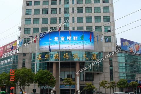 2010年4月,由元亨光电打造的又一重大工程——温州数码城大厦也已圆满完工,这块大屏幕采用像素间距为20mm的户外常规间距,显示面积为155平米,整屏像素近40万像素,近3:1的显示比例可以整屏显示一个画面也方便分割成2个或3个画面,这对于广告用途的屏来说是非常合适的,而我司自主研发的播放软件也方便用户对播放内容进行相应的设置。