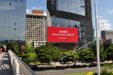 五月是万木枝繁叶茂的季节,深南大道以汪洋般的绿色让人赏心悦目,而元亨光电的业绩也恰似这绿景,充满了生机与活力。最近,元亨光电在深南大道上再添绿景,这块显示面积达357平米的户外大屏座落在临近香蜜湖的绿景纪元大厦上,由于安装位置距离地面仅有6米,因此采用像素间距为22mm的产品,整屏分辨率近74万像素。这块大屏幕面朝深南大道,正对香蜜湖路,地理位置得天独厚。站在香蜜湖人行天桥上,这块大屏幕高清的显示画面尽收眼底。这是我司继09年完成NEO企业大道和绿景城市立方之后为绿景集团提供的又一精品项目,这说明我司制作的高端LED显示屏极具投资价值。