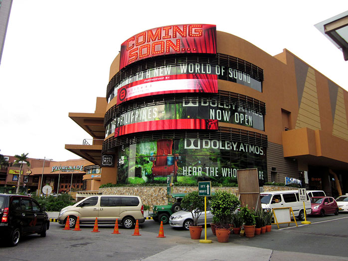 菲律宾马尼拉,YahamD16户外网格弧形屏夺目炫彩,熙熙攘攘的街头转角,大小不一的三个转角屏组成了一道靓丽的风景,画面清晰自然,视角开阔,吸引眼球同时也为客户带来了极大的商机。