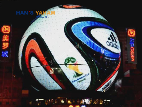 元亨光电美罗城巨型球形LED光栅屏项目,显示面积达2700㎡,是世界首例大型玻璃球体内广告光栅屏。整个安装都是顺着原有的建筑钢管现场来组装所有的灯条,整体高度达40多米,难度可想而知;为了降低视角的差异性带来的色彩偏差,所有光栅上像素点的布局采用横竖交错排布,确保各个视角的统一,采用抽点技术控制,使得整个画面看起来保持一致完整。