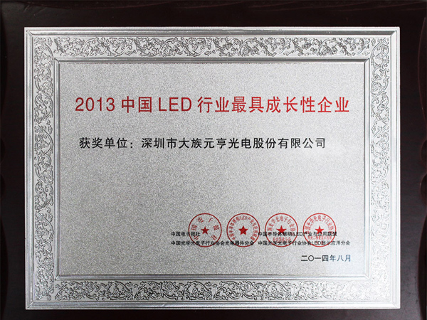【元亨光电荣获“2013中国LED行业最具成长性企业”】