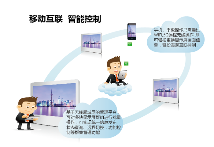 应用在高端商业连锁的电子屏幕种类多样,主要包括橱窗屏、贴墙屏、店招、广告机、户外广告牌等。随着移动互联网产业的不断发展,该类应用可轻松实现移动控制、多屏互联等多媒体移动控制方式。