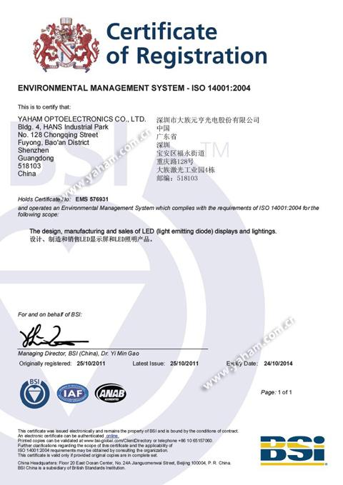 领先的LED应用产品系统解决方案提供商元亨光电日前获得全球顶级的的ISO认证机构BSI(英国标准协会)颁发的ISO9001:2008和ISO14001:2004认证证书,这标志着公司ISO标准升级工作圆满完成,公司将从质量预防、环境要求等方面以一个更高的标准来指导工作,产品质量和服务水平也向着更高的目标迈进。