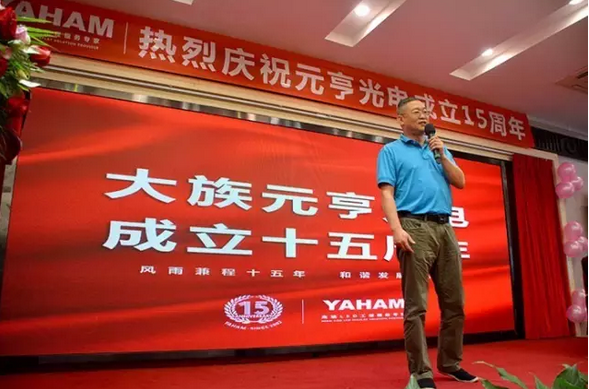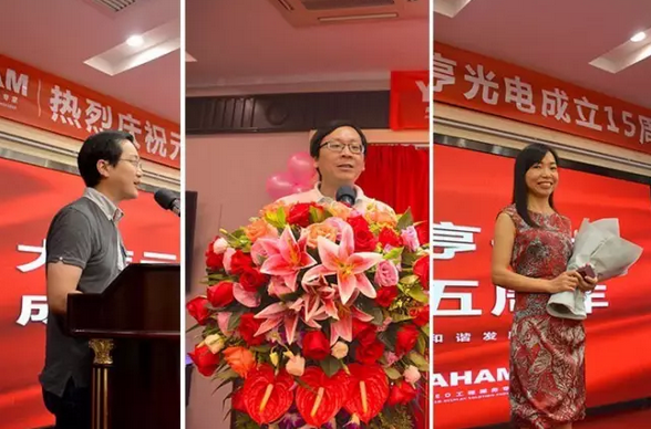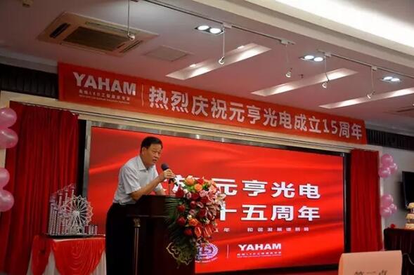 8月20日,元亨光电迎来了15岁的生日,为了感谢新老客户、供应商的支持和全体员工的辛勤付出,元亨光电在银湖酒店举行了15周年庆典,庆典由公司常务副总焦伟棋主持。公司副董事长张新庆、公司副董事长邝野、公司总裁王占明及客户代表、供应商代表、10年员工代表均发表致辞,各自分享回顾了在元亨光电的切身体会和成长历程。