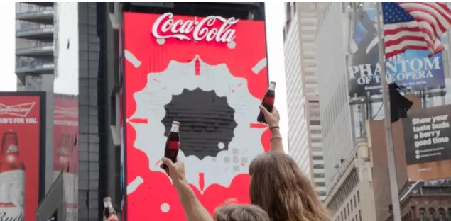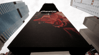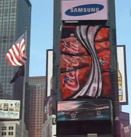 在2004年,可口可乐使用3D雕塑装置,使用了32个LED屏幕播放了各种数字图形,展示了纽约的风景和可口可乐在过去80年里的品牌形象。