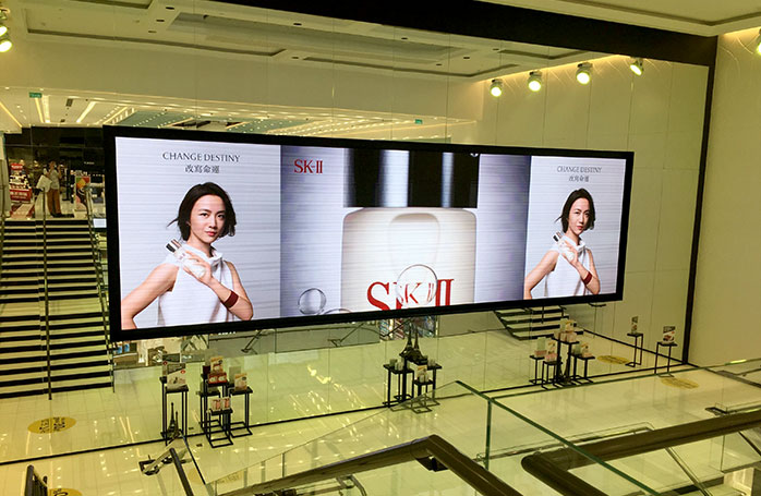 元亨光电的T4LED显示屏无疑便是现代化的体现,该屏间距为4mm,厚度仅为78mm,面积33m²,挂墙式安装于澳门巴黎人赌场户内,屏体小巧轻盈,没有丝毫的厚重感,完全与周围的氛围相得益彰,初次点亮便赢得了不少游客的赞叹。