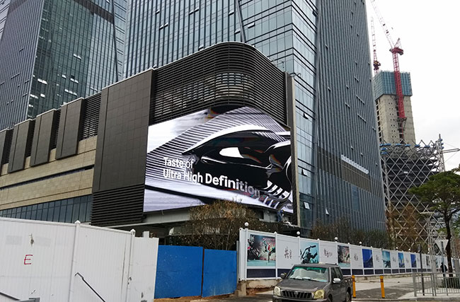 该屏由中间弧形,两边平面构成,根据建筑本身的弯曲弧度定制打造,严控弧形与平面间的过度精度,形成无缝隙高品质户外弧形屏,还原画面最本真的魅力。