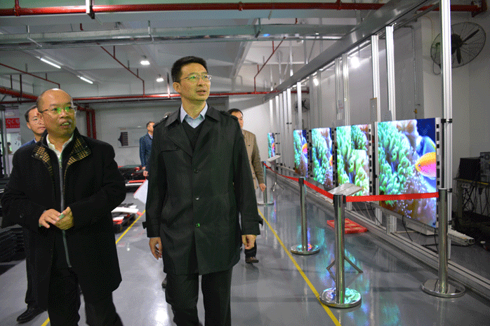 姚部长一行参观了装配车间,小间距调试车间以及元亨展厅小间距展区HDR高速动态显示,对元亨光电小间距产品创新发展速度和完善的生产体系表示高度认可。