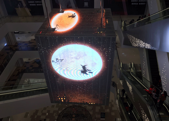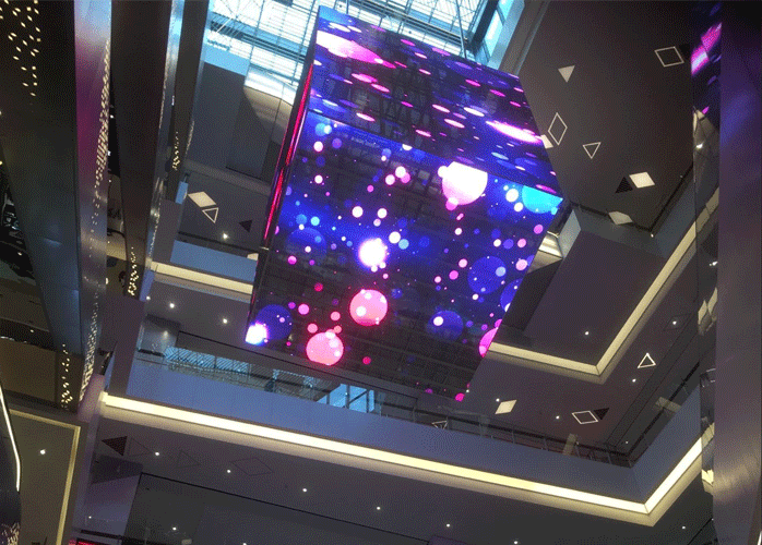 项目简介:位于北京合景魔方大厦的透明屏是一块形状为六面体魔方造型的异形屏,由于大厦的开业时间早已定下,因此交期问题成了最大的难题。为此,元亨光电工程人员在动工前就严格制定了工作计划,日夜赶工,确保项目按时完工。整屏位于商场中央,因此还特别做了升降设计,以便后期维修更换。