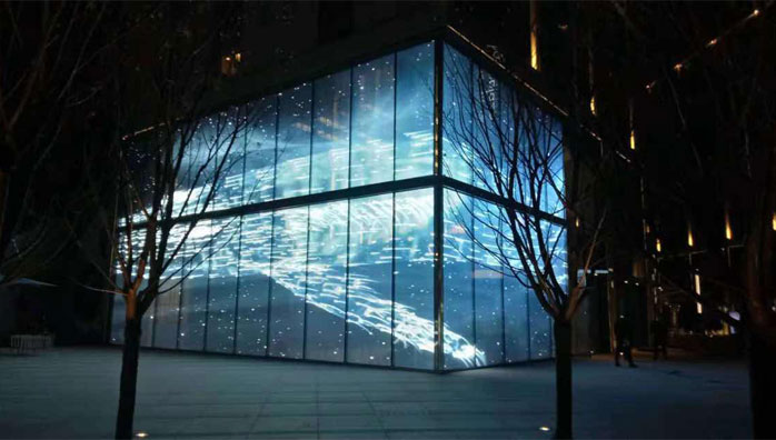 2018年,元亨光电在杭州良渚未来之光打造的总面积为270.45㎡、由34种不同尺寸的箱体构成的透明屏完美解决这三大难题:完全贴墙安装避免破坏幕墙外观及结构,透明屏70%的通透性确保玻璃幕墙的正常采光,也成为了未来城的一道独特的风景线。