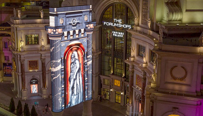 在美国拉斯维加斯凯撒宫,精湛的弧面加上无缝转角技术,定制打造的多种规格模组,使LED显示屏无缝覆盖柱子所有表面,元亨光电用S系列产品,集16年户外显示经验成就了这个古罗马风格门柱显示屏地标建筑。