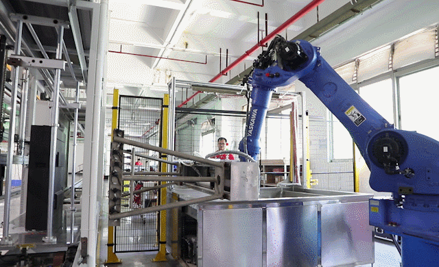 众所周知,户外LED箱体都要求做防水测试,需要在显示屏的表面淋水,经过多项测试后,确保防护等级要达到IP65,实现真正意义上的防水,才最终出货交付到客户手中。传统的淋水测试都需要人工搬运、淋水,效率极为低下。元亨泡水机器手用机器代替人工,机器精准抓住箱体,平稳将箱体运送到水池进行泡水测试,整个运行过程只需短短几十秒,不仅节省了劳动力,还极大地提高了工作效率。