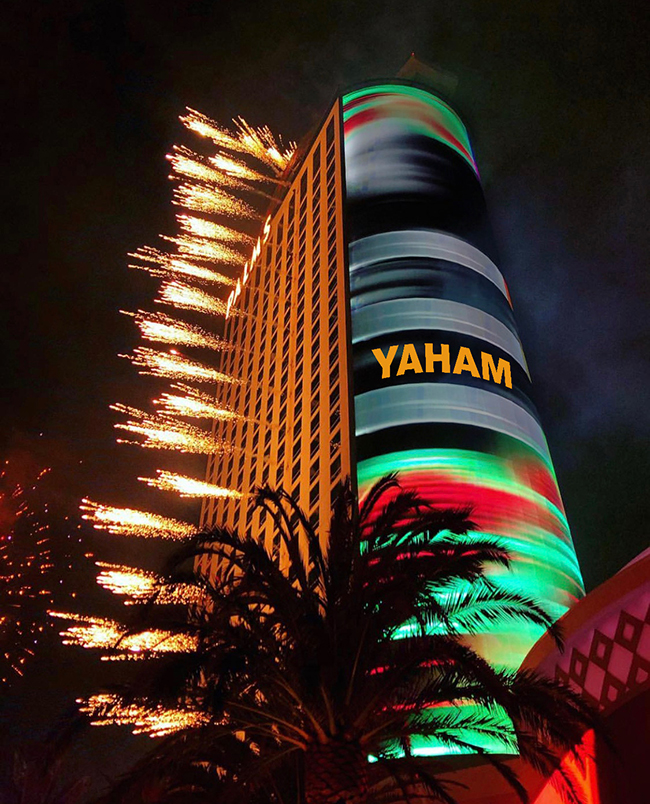 这块覆盖酒店整个曲面外墙的LED显示屏,由元亨光电LD25户外网格屏打造而成,整屏面积达1987.2平米。对于这座在沙漠中拔地而起的不夜城而言,LED显示屏安装最需要考虑的是显示屏的散热性能。为此,元亨在产品设计生产时特意选用日亚336高亮灯,这款灯珠不仅达到7000nits 的亮度要求,而且功耗低,能有效控制屏体热量。箱体内置的散热片能加快屏体散热,确保屏体在高温环境下正常运行。