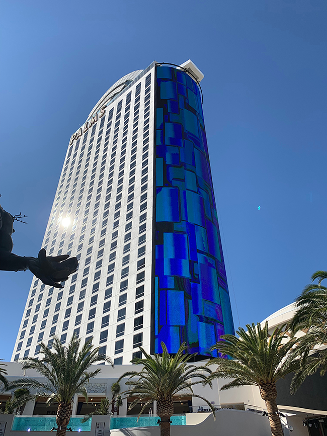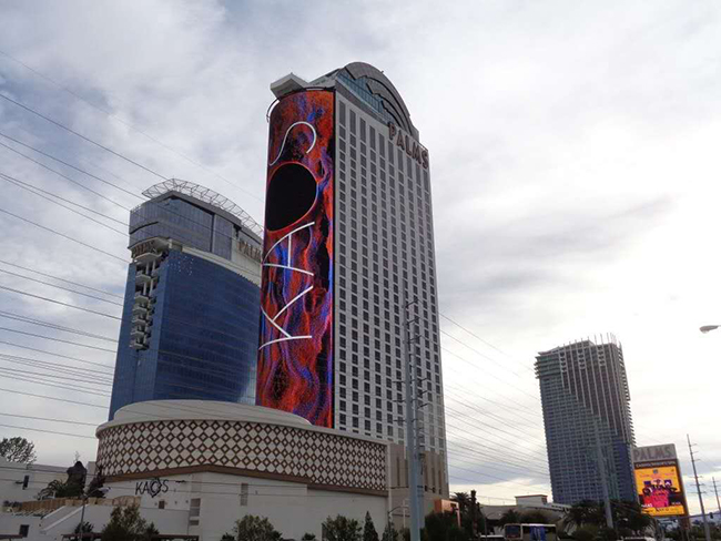 在这座活色生香的世界级热门旅游城市里,令人向往的不仅仅是随处可见的赌场,还有这里最繁华的主干道——长街(拉斯维加斯大道)两旁的世界著名豪华酒店群落。如果说位于拉斯维加斯心脏地带的凯撒宫是一座充满古罗马风情的奇幻宫殿,那么1.5公里以外的Palms , 则宛如一位时刻散发着典雅气质的贵妇,在夜幕中,在LED显示屏巨幕的映衬下,灯影闪烁、流光溢彩的Palms比白天更具魅力。