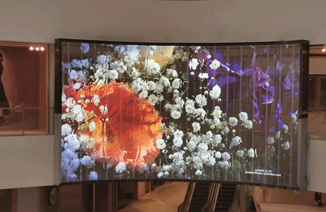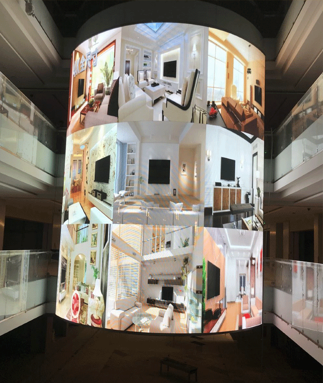 除电梯轿厢内,元亨曲面LED显示屏还以其不同的曲面造型应用在不同场合:今年,以“轨道+物业”战略布局”的杭州万科杭行道TOD商业体验区落成,元亨光电为其打造的T4半圆柱户内透明屏见证了这一历史性的时刻,极具科技前沿的显示屏与体验区内的一座炸裂时光的陀螺装置相互映衬,让杭行道以零售革新、美学感知、时效聚合、情感回归的LIVE式精神主张,造就未来城北的活力引擎。