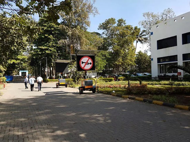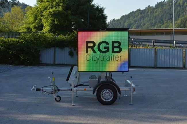 移动式的拖车屏适用于道路和桥梁建设施工现场,火警现场及停车场等地的交通信息播报系统,因其便捷的移动性能,LED 交通情报板不仅可以临时向驾驶人员提供有效的交通信息,提醒驾驶人员注意车速、天气等,减少交通事故的发生;还可以显示指挥调度部门的指令、通告以及相关的道路信息,从而有效地对交通进行诱导,提高道路的交通运输能力。