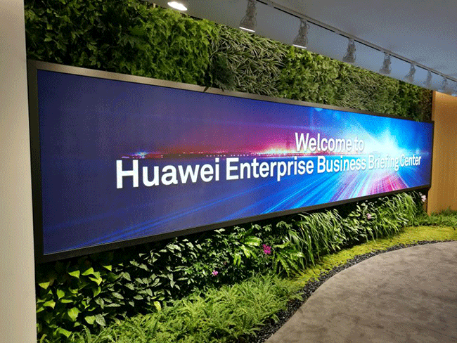 同时,元亨小间距在国内也大放异彩:今年5月,元亨总靠着一纸报价和过硬的产品质量以及专业的定制化服务,成功拿下双飞,成为华为南昌代表处及长沙代表处的室内小间距产品提供商,其中华为南昌的项目分辨率为2880*1350。而华为长沙项目的分辨率为3360*1620,两个项目均采用元亨H3系列T1.27产品。