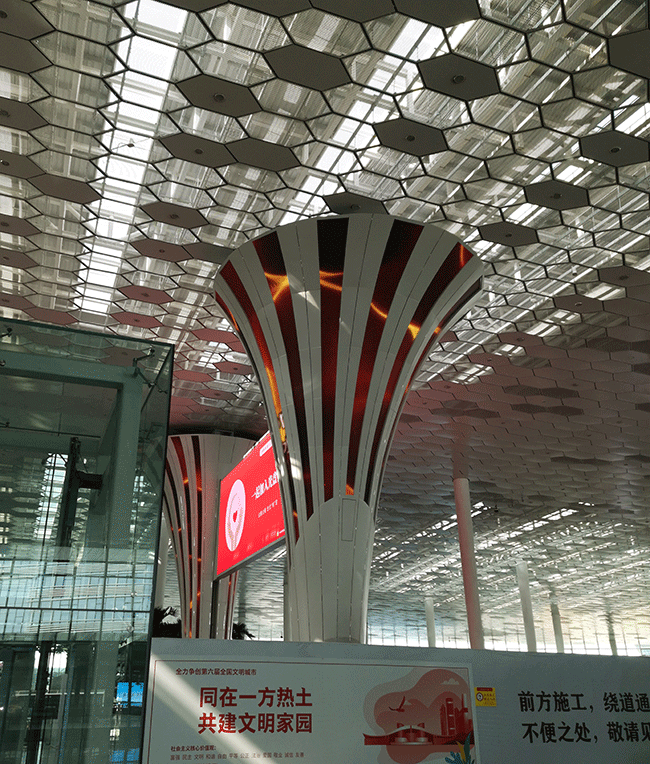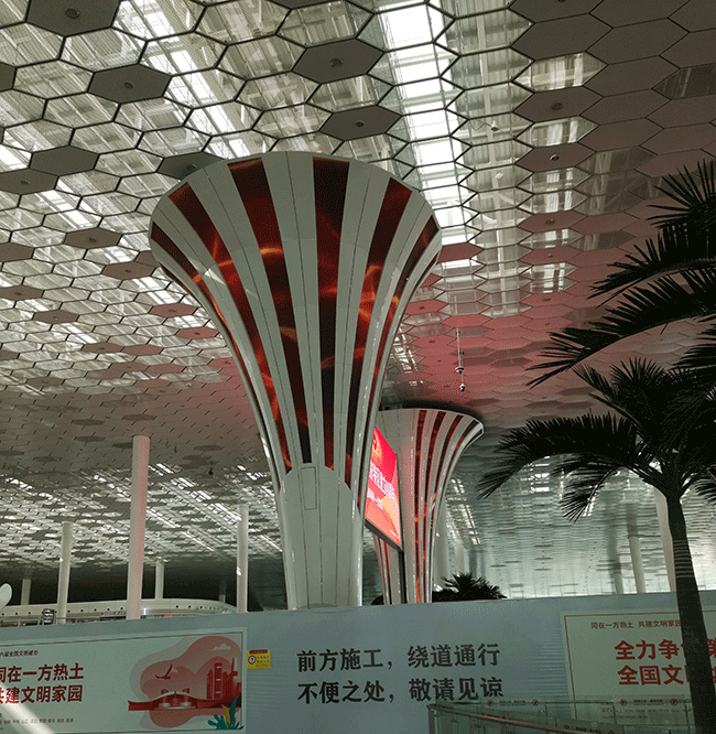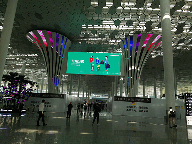 如果说,一周前深圳机场交通运营中心在建的创意LED屏还是一位“千呼万唤始出来,犹抱琵琶半遮面”的少女,那么正式完工后的它,就是一位出落得亭亭玉立的佳人,在深圳机场这条“大飞鱼”里,笑迎八方来客,从深圳出发,看世界。