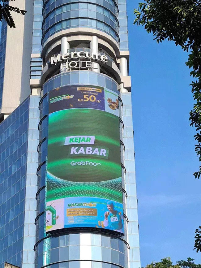 终年高温多雨的赤道地区与镂空、轻薄、高对比度、低风阻的户外显示产品是绝配。伫立在日惹Grand Mercure 酒店外的元亨GD系列显示屏,超过35%的面积采用镂空设计,能在提高产品透光率的同时,极大地降低风阻;独特的斜角设计能有效降低显示屏反光率,使其在烈日下的表现也同样出色
