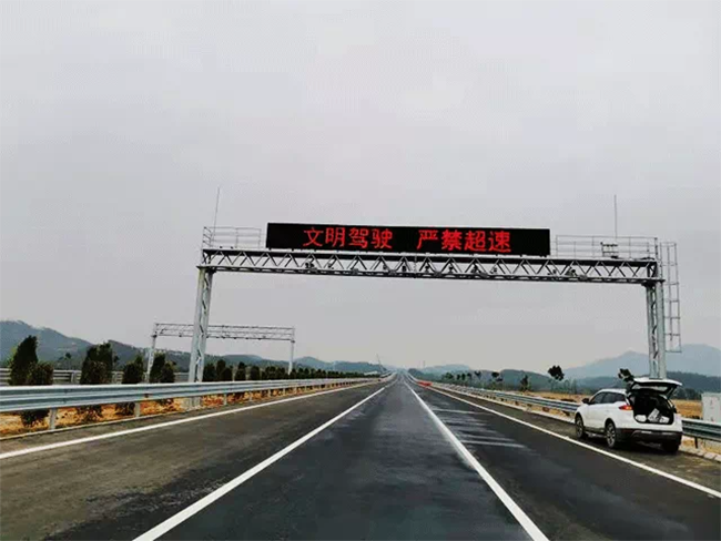 中开高速江门段双水互通至凤山互通段项目中,元亨共提供LED显示屏约100块,涵盖全彩小间距屏、可变信息情报板、信息发布屏等多个产品。