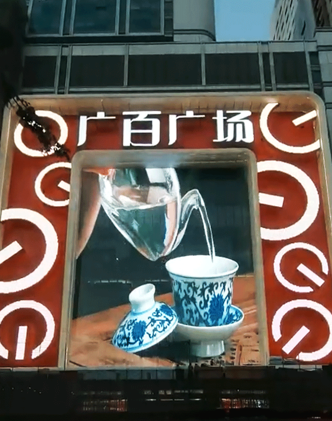 而门店外立面升级,运用现代科技赋予传统造型,LED透明屏的融入加强了商品与空间的美感,营造出高级商场的购物氛围,全面提升门店外立面时尚感,呼应“千年商都”文化的主题。