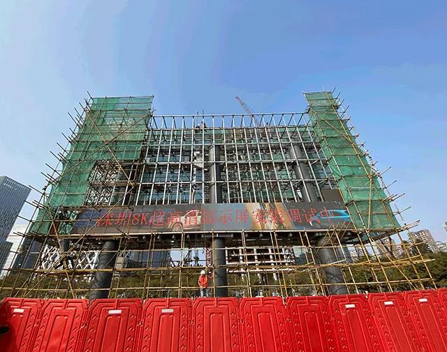 此外,由于现场施工工期短,项目工作量大,项目质量要求高,因此,在施工前,项目经理与研发人员就针对施工安排多次开会讨论,通过科学管理合理安排,在35天内完成了基坑开挖、钢管桩打桩、基础施工、结构制作、结构吊装、强弱电施工、屏体安装、屏体接线调试、草坪恢复、5G+8K信号对接调试等工作,比正常施工进度提高了一倍以上,保质保量提前完工。